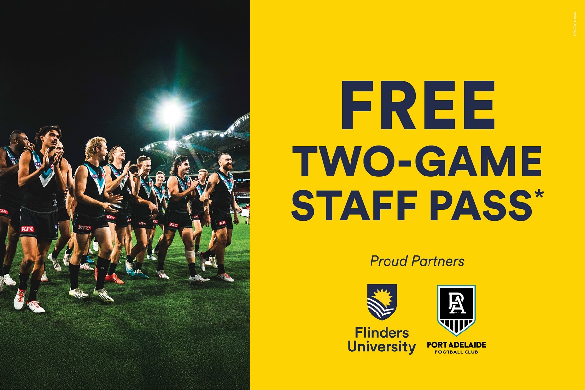 To celebrate another fantastic year of our partnership with the Port Adelaide Football Club, Flinders University staff can claim a complimentary two-game membership for the 2025 Premiership Season.