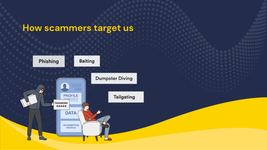 Social engineering is when individuals or groups attempt to trick people to reveal sensitive information or granting access to systems. It targets human behaviour such as urgency, curiosity, trust or fear rather than using hacking technology.