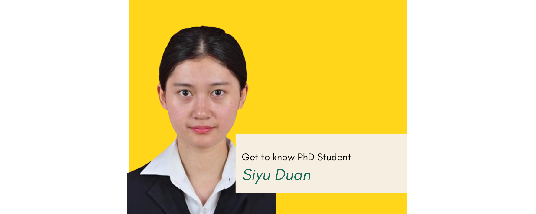 In this month’s newsletter, we would like to introduce PhD graduate, Siyu Duan from the College of Education, Psychology and Social Work.