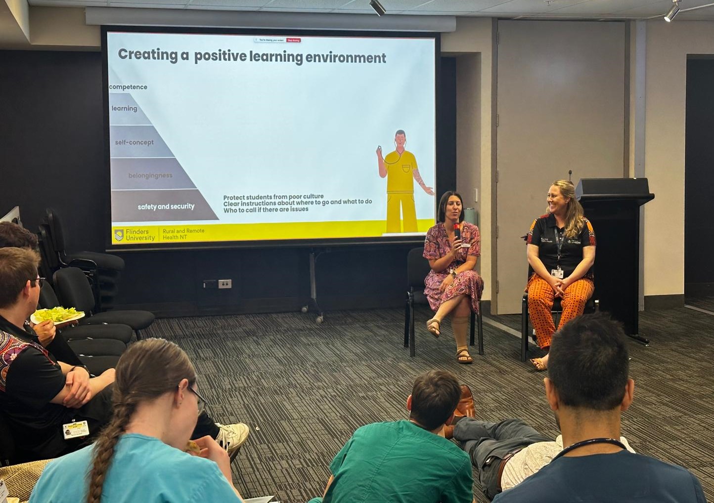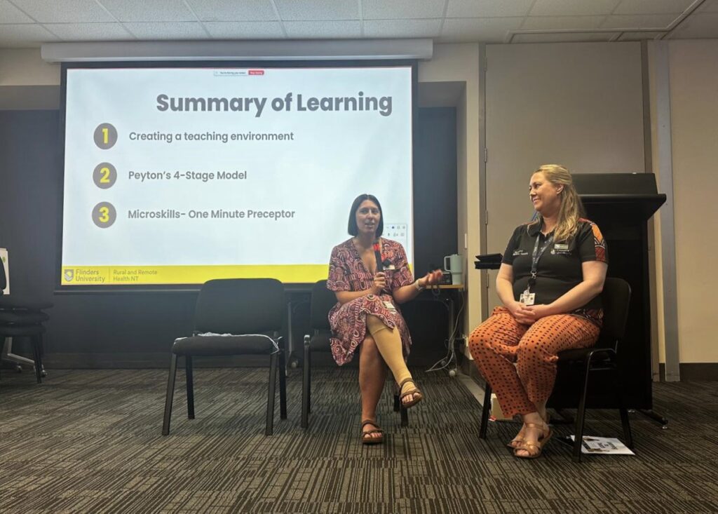 Dr Dayna Duncan, Medical Education Registrar, and Melba Ridd, Lecturer in Remote Allied Health, presented at the Resident Medical Officer (RMO) weekly teaching session in Darwin this July. The one-hour session titled ‘Learning to Teach’ was designed to whet the RMO’s appetites and to encourage them to consider further training in clinical supervision.