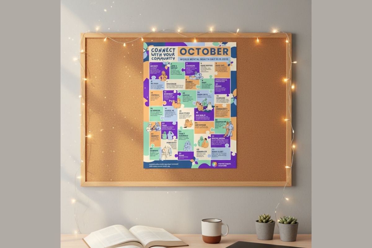 In the modern wellbeing environment in which we live, a mental health or wellbeing calendar is usually a set of evidence-based tips about how to look after your mental health/ wellbeing, allocated to different days of the month.
