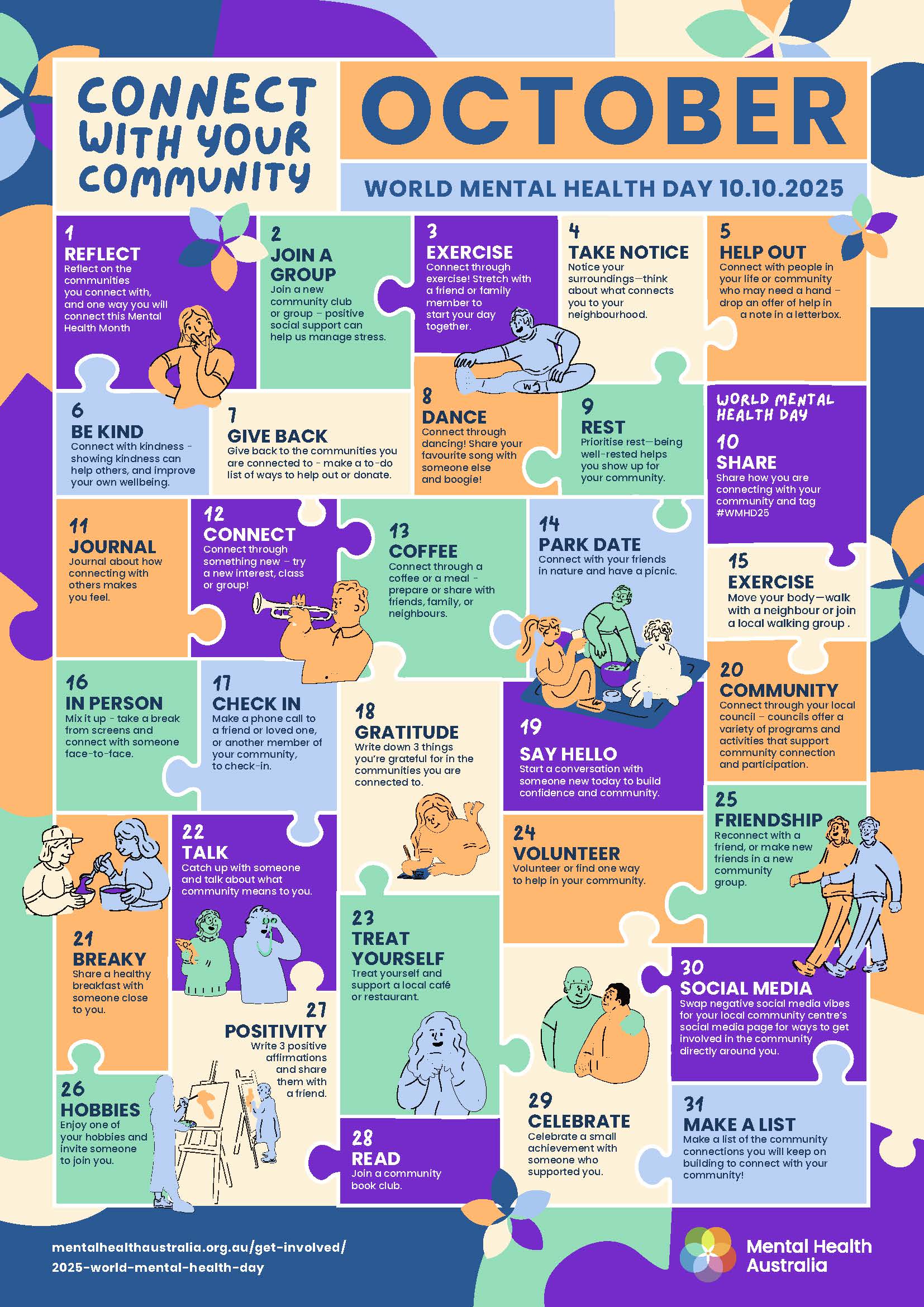 Whilst some groups like Mental Health Australia focus on specific months, there are other groups that provide calendars year-round.
